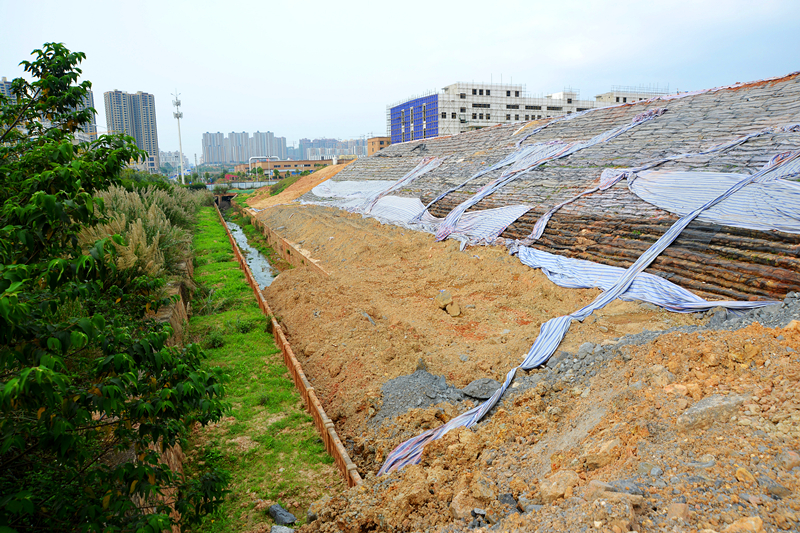 該項(xiàng)目目前已經(jīng)完成土方開挖運(yùn)輸7.5萬立方,土方回填壓實(shí)7萬立方,填土土工格柵鋪設(shè)12.6萬平方米,壓腳墻長度220米,截至今年4月份共完成總投資275萬元,預(yù)計2016年5月工程竣工驗(yàn)收。