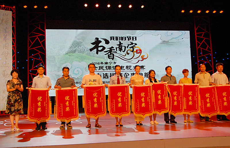 7月14日下午,由中共南寧市委宣傳部、市總工會(huì)等多家單位聯(lián)合主辦的2016年經(jīng)典誦讀大賽(企事業(yè)組)在南寧電視臺(tái)演播廳舉行,此次大賽的主題為“誦讀經(jīng)典 傳承文明”,20支參賽隊(duì)伍以各自的創(chuàng)意方式如古箏、書(shū)法、武術(shù)、漢服等,展現(xiàn)了中華傳統(tǒng)文化之美。綠港集團(tuán)代表隊(duì)在經(jīng)過(guò)經(jīng)開(kāi)區(qū)選拔、市各大企業(yè)的初賽后,作為經(jīng)開(kāi)區(qū)唯一一家企業(yè)參加當(dāng)天的比賽,并獲得了優(yōu)秀獎(jiǎng),樹(shù)立企業(yè)良好的形象。(集團(tuán)辦公室 蒙歆芬、何承遜)