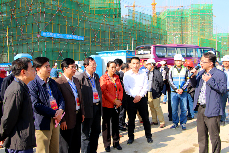 視察組一行在經(jīng)開(kāi)區(qū)管委會(huì)辦公區(qū)聽(tīng)取管委會(huì)全年工作匯報(bào)后,首先來(lái)到自治區(qū)為民辦實(shí)事棚戶(hù)區(qū)改造項(xiàng)目——新港家園項(xiàng)目現(xiàn)場(chǎng)調(diào)研指導(dǎo)工作。綠港集團(tuán)黨委書(shū)記、董事長(zhǎng)、總經(jīng)理?xiàng)顤|向人大代表們匯報(bào)了新港家園項(xiàng)目建設(shè)情況,他說(shuō),新港家園作為自治區(qū)為民辦實(shí)事統(tǒng)籌推進(jìn)的棚戶(hù)區(qū)改造項(xiàng)目,承擔(dān)著經(jīng)開(kāi)區(qū)吳圩鎮(zhèn)被征地拆遷農(nóng)民的安置任務(wù),事關(guān)空港經(jīng)濟(jì)區(qū)建設(shè)發(fā)展的大局。綠港集團(tuán)作為建設(shè)業(yè)主,積極貫徹落實(shí)自治區(qū)、南寧市、經(jīng)開(kāi)區(qū)相關(guān)決策部署,根據(jù)“讓利于民、統(tǒng)一規(guī)劃、統(tǒng)一建設(shè)”總體開(kāi)發(fā)思路,充分發(fā)揮綠港鐵軍精神,通過(guò)創(chuàng)新項(xiàng)目管理模式,抽調(diào)精干力量,狠抓工程質(zhì)量,快速有序的推進(jìn)項(xiàng)目建設(shè)工作。