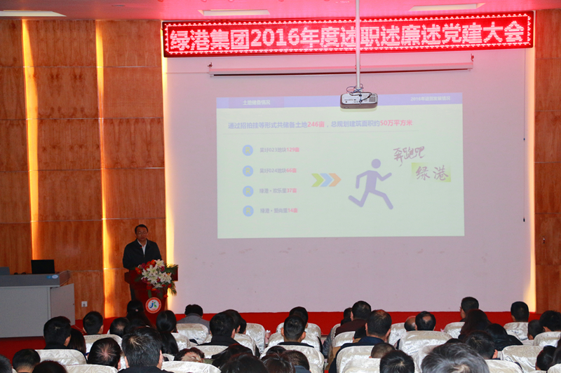 2017年1月14日,綠港集團召開2016年度述職述廉述黨建工作會議,集團全體領導班子、集團總部全體員工及子公司中層干部、職工代表共150余人參加了大會,經開區(qū)紀工委派駐國有公司紀檢組組長李云岳,黨群工作局組織科科長向國澤出席會議。