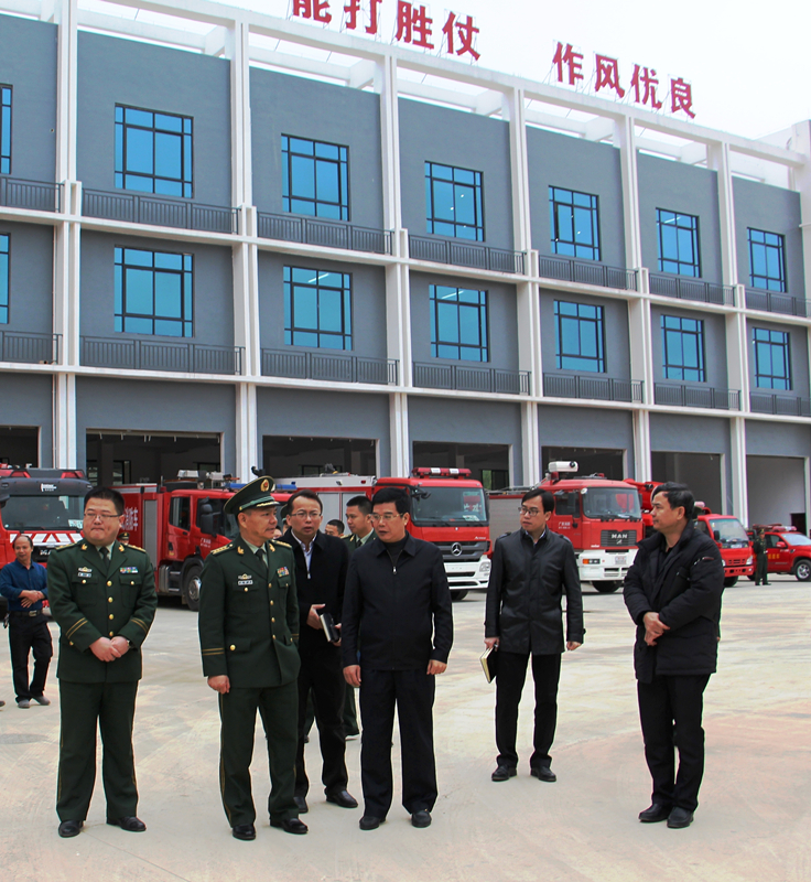 2月23日上午,南寧市消防支隊支隊長鄧錫中在經開區(qū)黨工委書記、管委會主任何尚漢、經開區(qū)消防大隊大隊長詹寧、綠港集團董事長楊東等領導的陪同下到綠港集團承建的吳圩空港新城消防站開展調研。