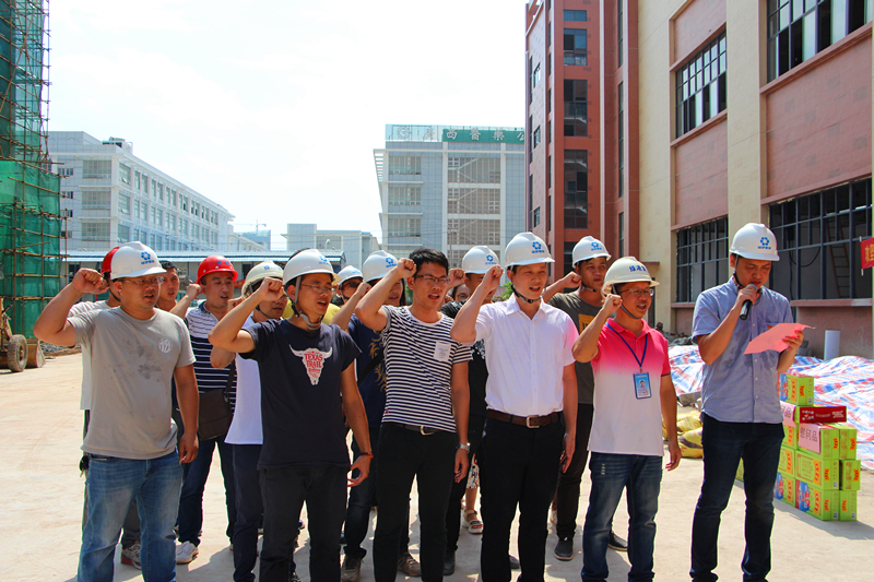 當(dāng)天,驕陽似火。綠港集團(tuán)黨委書記、董事長、總經(jīng)理龔國強(qiáng)莊重地給黨員們授予“黨員先鋒隊”紅旗,給青年突擊隊員們授予“青年突擊隊”紅旗,并提出了幾點(diǎn)要求:一是要緊緊圍繞項目建設(shè)開展突擊活動。全體黨員干部和青年同志要充分發(fā)揚(yáng)不怕吃苦、勇于負(fù)重,敢打硬仗、能打硬仗的優(yōu)良傳統(tǒng),切實發(fā)揮“黨員先鋒隊”、“青年突擊隊”在“急、難、險、重”任務(wù)中的生力軍作用。二是要把項目建設(shè)與錘煉黨員意志相結(jié)合。黨員干部和青年同志們要充分發(fā)揮模范帶頭作用,深入項目一線,了解項目建設(shè)困難,想方設(shè)法協(xié)調(diào)解決。要在項目建設(shè)中增強(qiáng)本領(lǐng)、錘煉意志、增強(qiáng)黨性,更好的服務(wù)入?yún)^(qū)企業(yè)建設(shè)發(fā)展。三是要充分發(fā)揮“黨建帶團(tuán)建”作用?!包h員先鋒隊”要引導(dǎo)和指導(dǎo)好“青年突擊隊”開展好項目建設(shè),黨員干部與青年同志們要相互關(guān)心,密切配合,充分發(fā)揮整體功能和團(tuán)隊精神,確保瑞聲廠房項目能在6月25日完工交付9號廠房、7月25日完工交付3、13號廠房的任務(wù)目標(biāo)。