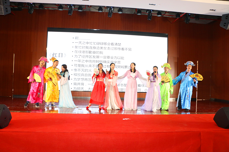 隨后,來(lái)自集團(tuán)工程管理部林重胤以及嘉通公司潘青青甜蜜獻(xiàn)唱《告白氣球》,讓大家感受到了愛(ài)情的絲絲美好。嘉通公司的《夸夸咱公司》,用三句半的表演形式唱出了綠港集團(tuán)濃濃的企業(yè)文化情愫,也展現(xiàn)了綠港員工積極、拼搏、向上的精神?!段乙鼐G港》、《聲臨其境》、《好運(yùn)來(lái)》、《愛(ài)》、《好嗨喲》等多個(gè)節(jié)目在觀眾的熱情掌聲中聯(lián)袂奉上一場(chǎng)精彩演出,整個(gè)活動(dòng)歌聲笑聲、熱烈的掌聲匯成了歡樂(lè)的海洋。集團(tuán)營(yíng)銷管理中心的《四小天王齊賀歲》以及集團(tuán)計(jì)劃運(yùn)營(yíng)部、紀(jì)檢監(jiān)察審計(jì)部、安全監(jiān)督部聯(lián)合帶來(lái)的《蒙面唱將猜猜猜》將活動(dòng)推向高潮,現(xiàn)場(chǎng)掌聲不斷??彀濉毒G港贊歌》道出了綠港集團(tuán)成立五載,綠港人用智慧和汗水所取得的成效。最后,集團(tuán)領(lǐng)導(dǎo)班子壓軸出場(chǎng),帶來(lái)詩(shī)歌朗誦《相信未來(lái)》,贏得陣陣掌聲,讓大家堅(jiān)定了信心、鼓足了干勁,對(duì)美好生活更加熱愛(ài)和向往。