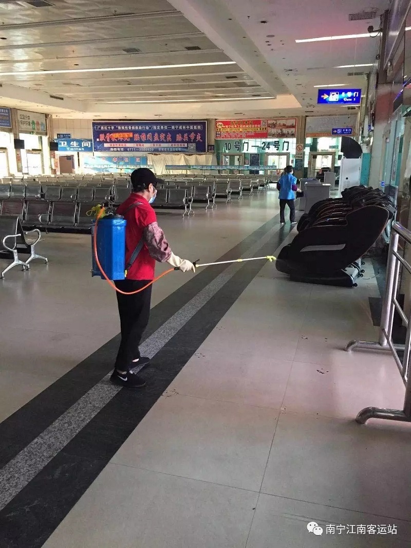 ▲江南客運站對站內(nèi)座椅等相關設施進行消殺。 (江南客運站供圖)