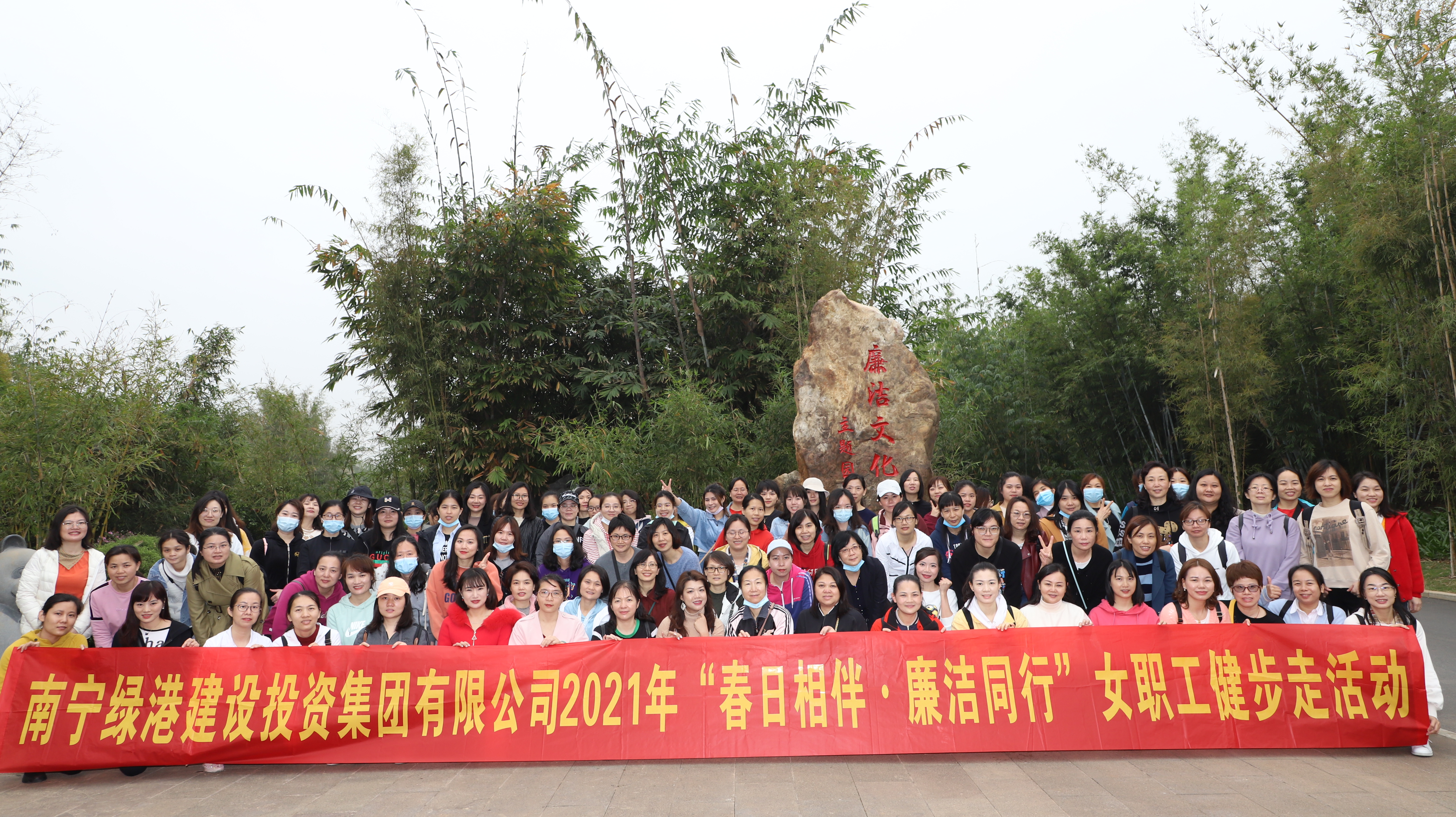陽春三月,春意盎然。為慶祝第111個“三八”國際婦女節(jié),充分展示婦女職工積極進(jìn)取、昂揚向上的巾幗風(fēng)采,弘揚“綠色運動”健康理念,倡導(dǎo)健康文明生活方式,3月8日,綠港集團(tuán)黨委、綠港集團(tuán)工會、綠港集團(tuán)女工委在南寧青秀山共同舉辦“春日相伴·廉潔同行”健步走活動。集團(tuán)公司黨委書記、董事長龔國強(qiáng),集團(tuán)公司黨委副書記、總經(jīng)理鄧?yán)^慧,集團(tuán)公司黨委委員、副總經(jīng)理陸羿冰,集團(tuán)公司黨委委員、副總經(jīng)理、工會主席黃麗琴,集團(tuán)公司財務(wù)總監(jiān)關(guān)月娥出席活動。綠港集團(tuán)全體管理崗位女職工及其親屬約130人參加。