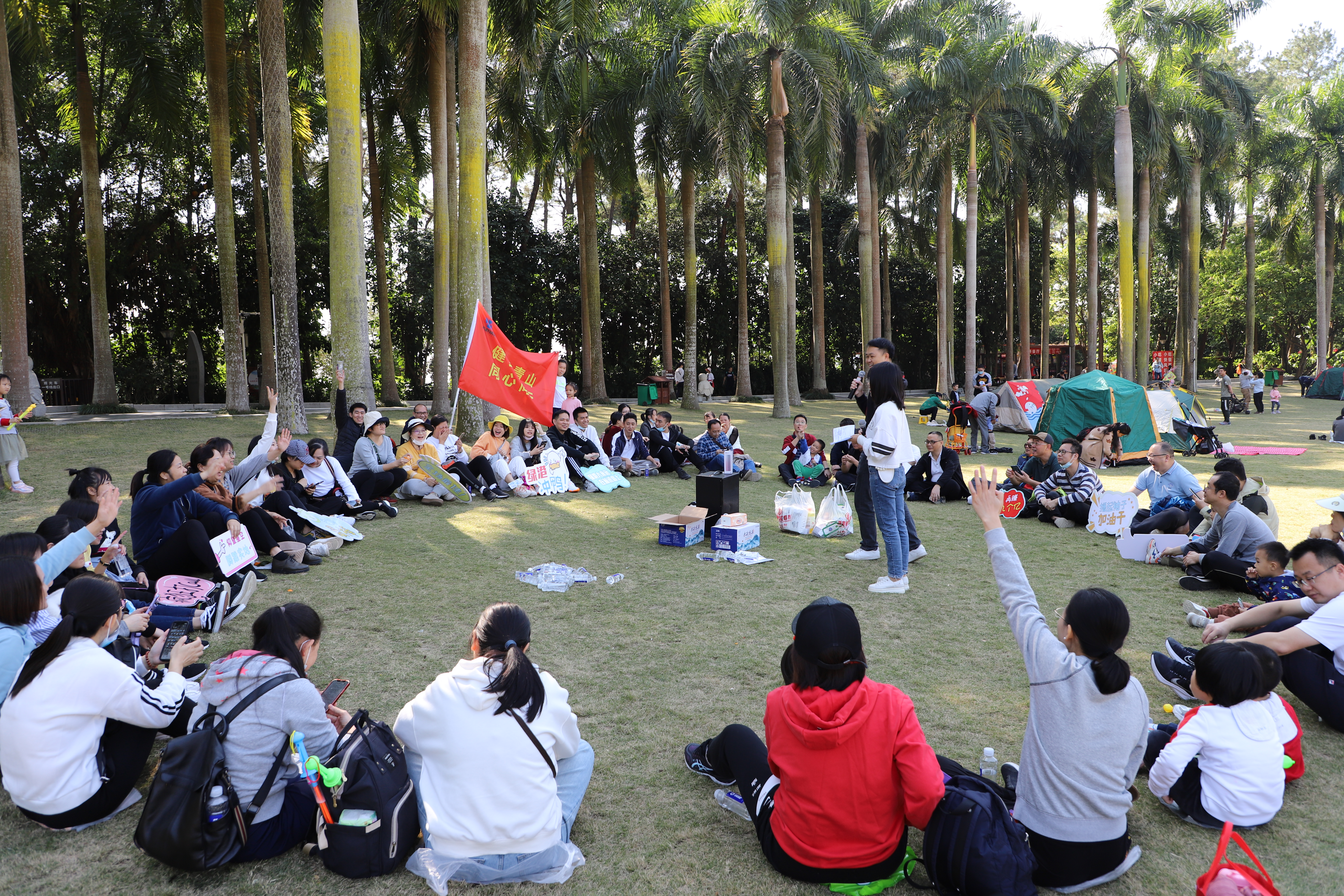 徒步登山之旅暫告一段落后,成員們團坐在草坪上參與黨史及十九屆六中全會知識問答活動。“共產黨人的世界觀和方法論是什么”“我來我來,是辯證唯物主義”,“那十九屆六中全會上提出,黨的十八大以來,中國特色社會主義進入了什么?”“我知道我知道,進入了新時代”。在此起彼伏的搶答聲中,成員們不僅收獲了歡樂,更是增強了對黨史及十九屆六中全會知識的認知。