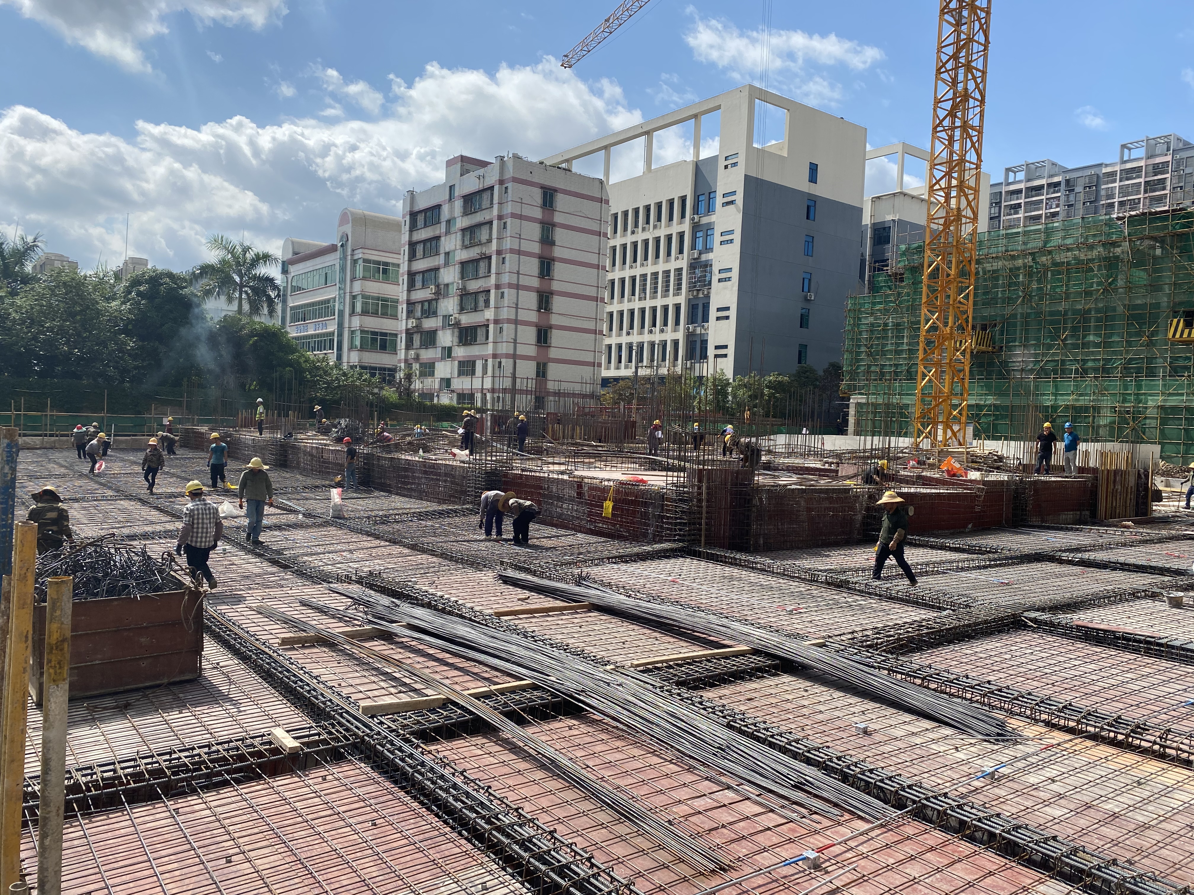 按照施工計(jì)劃,項(xiàng)目2#樓為最后施工的一個(gè)單體。因工作面有限,加上雨季施工,土方施工遭遇到前所未有的困難,最后幾千立方土,每一方都需要勾機(jī)采用二次甚至三次轉(zhuǎn)運(yùn)的方式才能裝車外運(yùn),對(duì)預(yù)定工期兌現(xiàn)造成極大影響。為克服困難,自土方開(kāi)挖以來(lái),綠港集團(tuán)下屬嘉通公司緊盯預(yù)售節(jié)點(diǎn)為目標(biāo),結(jié)合工程實(shí)際,制定了詳細(xì)、合理的搶工計(jì)劃,并迅速建立一支“強(qiáng)管理、控疫情、重安全、抓質(zhì)量”工作團(tuán)隊(duì),全員爭(zhēng)分奪秒追上施工“加速列車”,與時(shí)間賽跑。同時(shí)要求參建單位優(yōu)化每道施工工序搭接,合理穿插施工,實(shí)行小雨不停工、大雨制造條件施工、天晴三班制搶工的施工方案。在先后克服了疫情反復(fù)、揚(yáng)塵噪音管控以及惡劣天氣帶來(lái)的各種問(wèn)題,最終于6月30日取得喜人進(jìn)展,項(xiàng)目順利完成全部地下室工程的主體施工。