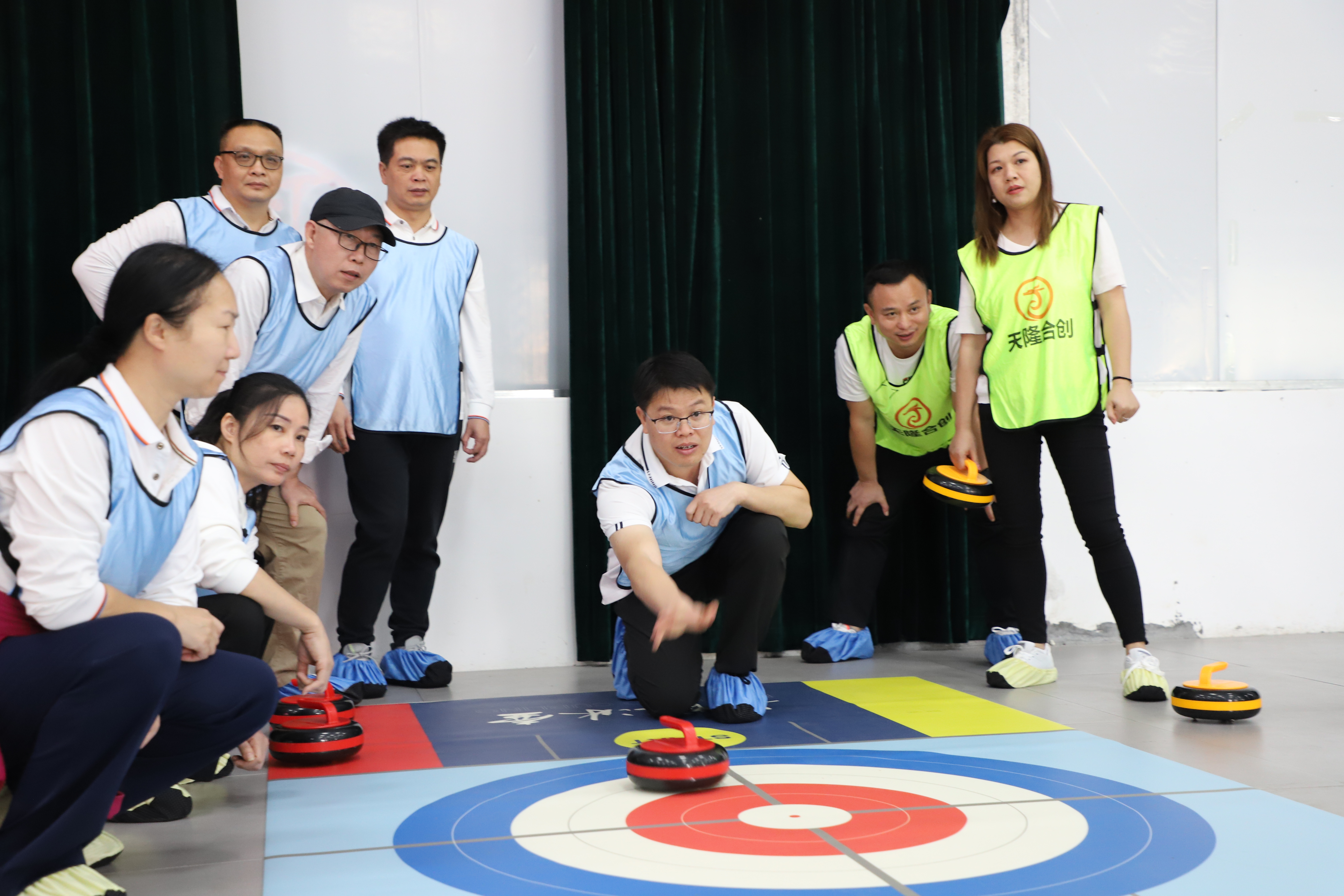 當(dāng)天下午,參訓(xùn)人員分成六個(gè)小分隊(duì)開展了冰壺素質(zhì)拓展比賽。手握把手、單膝觸地、精準(zhǔn)一推……比賽現(xiàn)場(chǎng),選手們?nèi)褙炞?,和?duì)友商討戰(zhàn)術(shù)、默契配合,大家你來我往、斗智斗勇,每一次冰壺相互碰撞都激起一片歡呼聲和掌聲,充分展現(xiàn)出綠港集團(tuán)中高層管理著積極向上、奮力拼搏、團(tuán)結(jié)協(xié)作的精神風(fēng)貌。