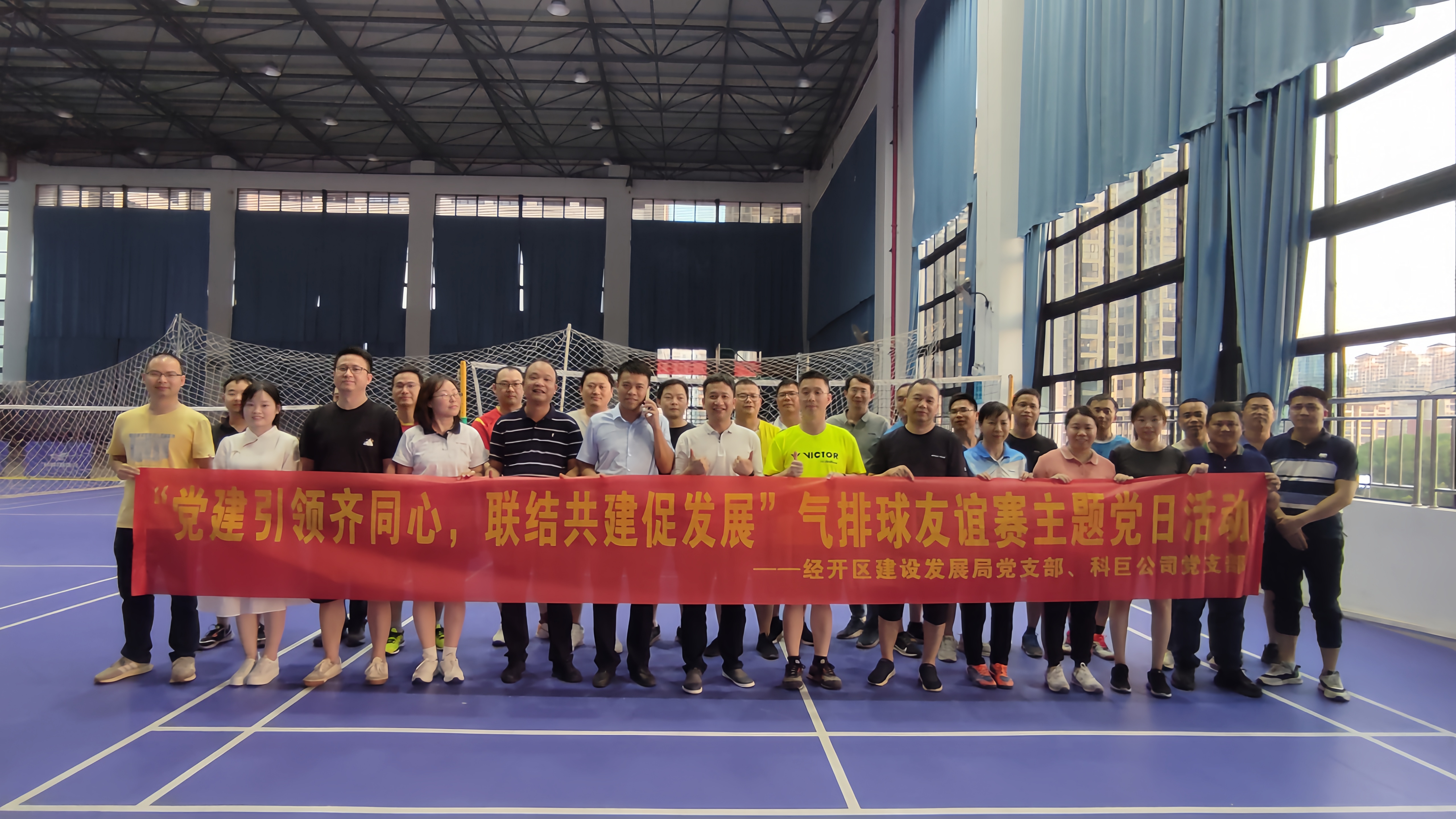“今晚的友誼賽打得真是酣暢淋漓!”隊員們賽后仍然意猶未盡。5月30日,為進一步增強黨支部之間的交流,科巨公司黨支部與經(jīng)開區(qū)建設(shè)發(fā)展局黨支部在綠港·歡樂里魚悅體育館開展了一場熱情洋溢、精彩紛呈的“黨建引領(lǐng)齊同心,聯(lián)結(jié)共建促發(fā)展”氣排球友誼賽主題黨日活動,以黨建為契機,揮灑運動汗水,點燃夏日激情,強化政企溝通,增進政企共識,攜手共建經(jīng)開新篇章!