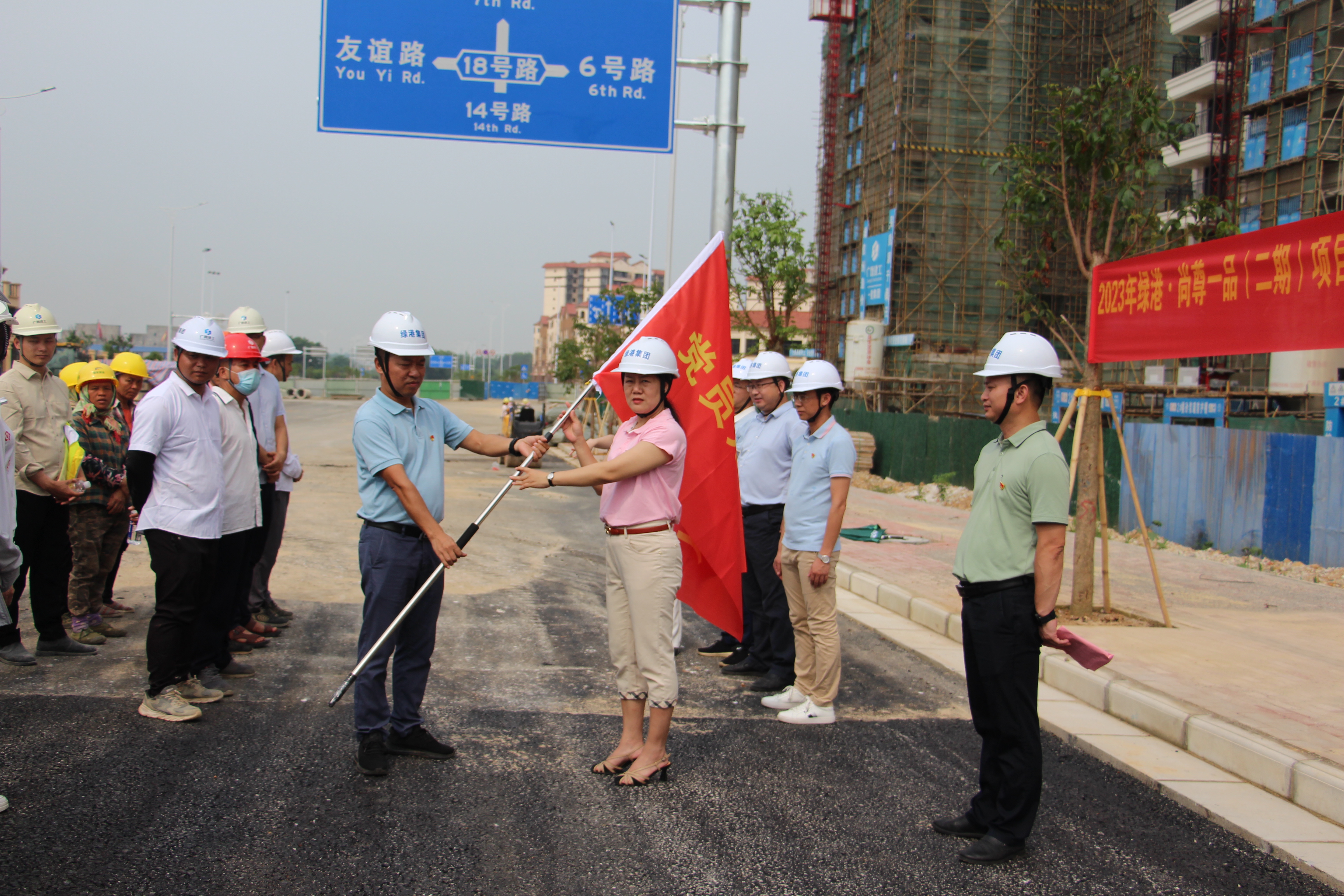 項(xiàng)目黨旗紅,一線先鋒行。為更好地服務(wù)項(xiàng)目建設(shè),全方位打贏“民生精品工程交付”攻堅(jiān)戰(zhàn),進(jìn)一步強(qiáng)化基層黨組織和廣大黨員在生產(chǎn)經(jīng)營(yíng)各項(xiàng)工作中的戰(zhàn)斗堡壘和先鋒模范作用,充分展示黨員和青年在公司重點(diǎn)工程項(xiàng)目建設(shè)中的風(fēng)采,6月13日,嘉通公司黨支部在綠港·尚尊一品(二期)項(xiàng)目現(xiàn)場(chǎng)舉行2023年“黨員先鋒隊(duì)”“青年突擊隊(duì)”授旗儀式。綠港集團(tuán)黨委委員、副總經(jīng)理黃麗琴出席活動(dòng)并作講話。集團(tuán)成本管理部、營(yíng)銷管理中心、嘉通公司黨支部全體黨員以及項(xiàng)目施工單位、監(jiān)理單位參加活動(dòng)。