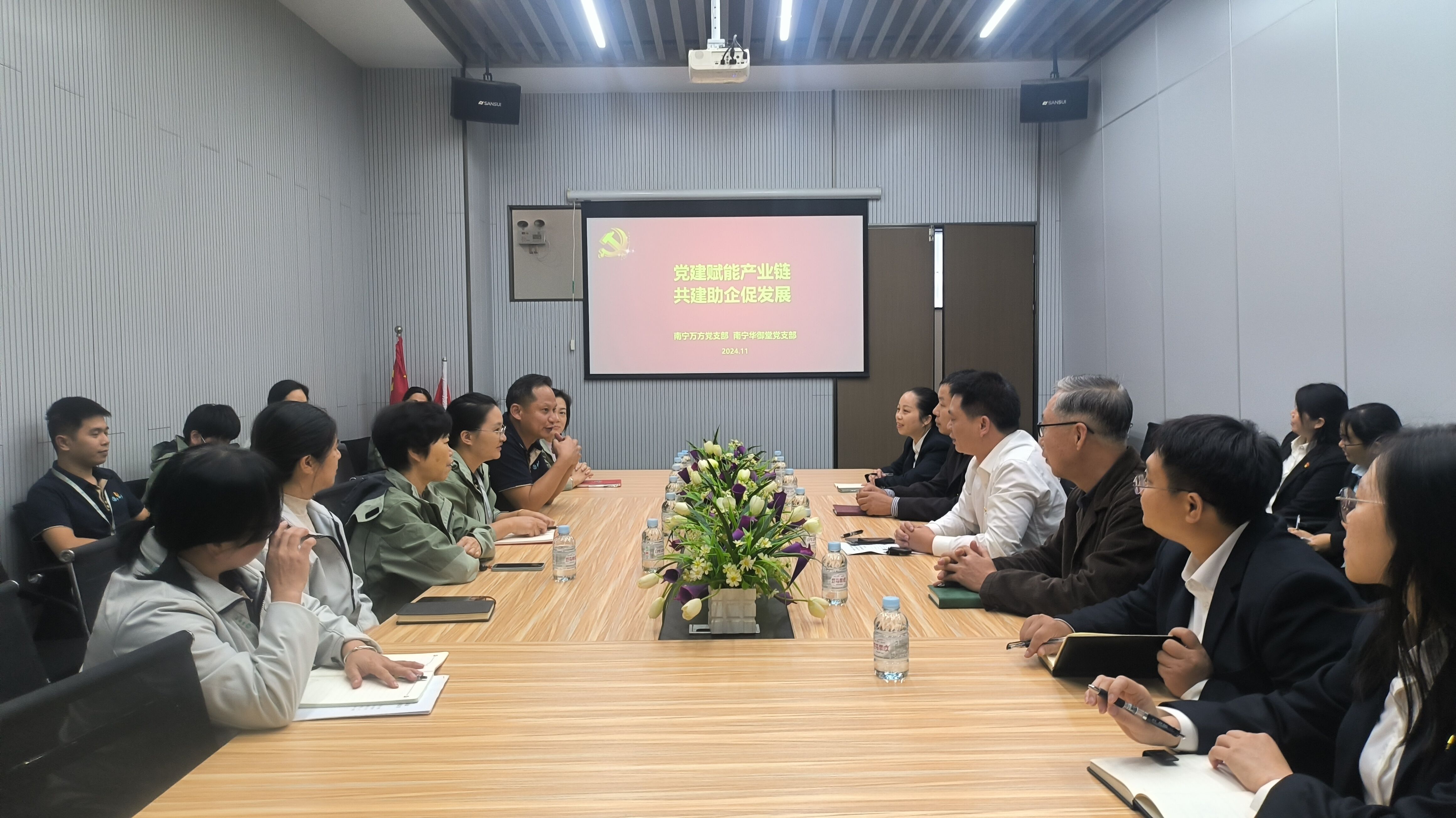 萬(wàn)方公司黨支部全體黨員來(lái)到位于金凱工業(yè)園的華御堂公司,首先參觀(guān)了華御堂公司的工作區(qū),了解公司基本經(jīng)營(yíng)情況。隨后雙方進(jìn)行了座談,就支部黨建工作、公司經(jīng)營(yíng)工作、服務(wù)訴求等方面展開(kāi)交流。華御堂公司的黨員們高度肯定了萬(wàn)方公司所提供的優(yōu)質(zhì)服務(wù),并對(duì)安全培訓(xùn)、服務(wù)優(yōu)化等方面提出了中肯的建議。萬(wàn)方公司副總經(jīng)理覃富文表示,華御堂公司是生產(chǎn)經(jīng)營(yíng)企業(yè),萬(wàn)方公司是物業(yè)服務(wù)企業(yè),均是產(chǎn)業(yè)鏈中重要一環(huán),雙方進(jìn)行經(jīng)驗(yàn)交流、信息溝通及相互了解需求有助于促進(jìn)公司的高質(zhì)量發(fā)展。雙方就今后進(jìn)行客戶(hù)信息、資源共享達(dá)成共識(shí),決定建立常態(tài)化的溝通機(jī)制,以相對(duì)固定的形式開(kāi)展支部共建聯(lián)建活動(dòng),共同致力于提高物業(yè)服務(wù)水平,推動(dòng)企業(yè)發(fā)展。最后雙方進(jìn)行了氣排球友誼賽,兩個(gè)黨支部的黨員、入黨積極分子熱情參與、激烈角逐,充分體現(xiàn)出雙方團(tuán)結(jié)拼搏、奮勇?tīng)?zhēng)先的精神風(fēng)貌。雙方通過(guò)比賽加深了彼此間的了解和友誼,為雙方繼續(xù)深化黨建交流、加強(qiáng)業(yè)務(wù)合作奠定了良好基礎(chǔ)。